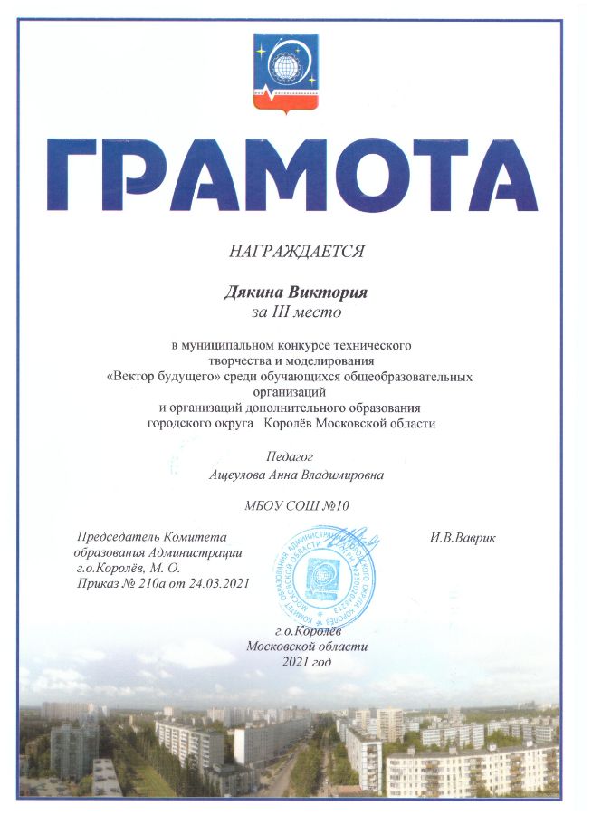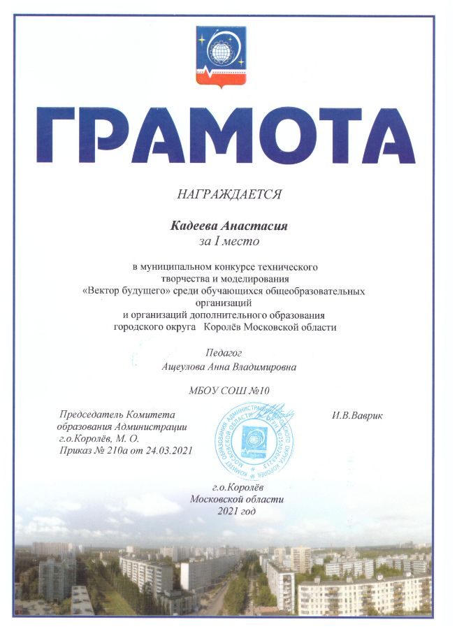 Скрицкая Елена Андреевна 100 баллов ЕГЭ по литературе (учитель Волкова Ольга Николаевна) Алена занимает активную жизненную позицию, принимает участие в жизни класса и школы, является корреспондентом общественной организации «Молодежный Медиацентр», увлекается журналистикой и планирует свою будущую карьеру в этой сфере. Победитель международного конкурса проектов школьников 10-11 классов «New project» 2020-2021 с индивидуальным проектом по журналистике. Имеет благодарности от общественных организаций города за вклад в развитие молодёжной политики горлдского округа Королёв |
